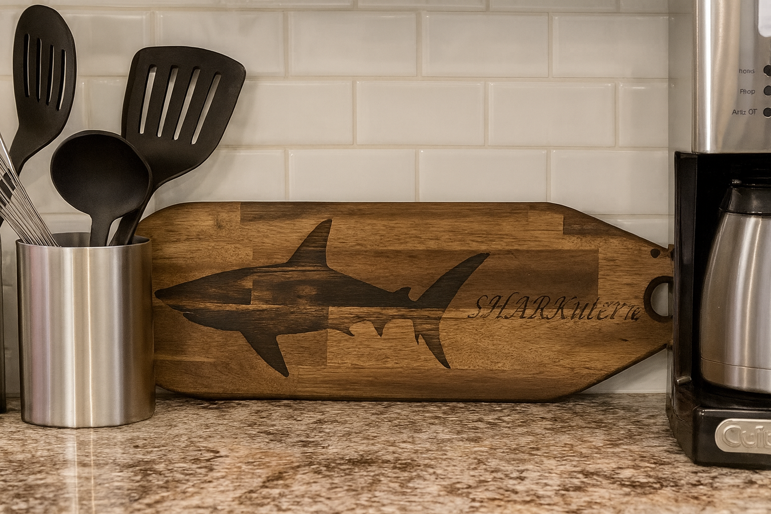 When the board arrived, I was honestly blown away by the quality. The craftsmanship is outstanding — the wood grain is beautiful, the finish is smooth and premium, and the engraved shark design with the great detail looks absolutely incredible. It’s solid, well-balanced, and clearly made with care and attention to detail.